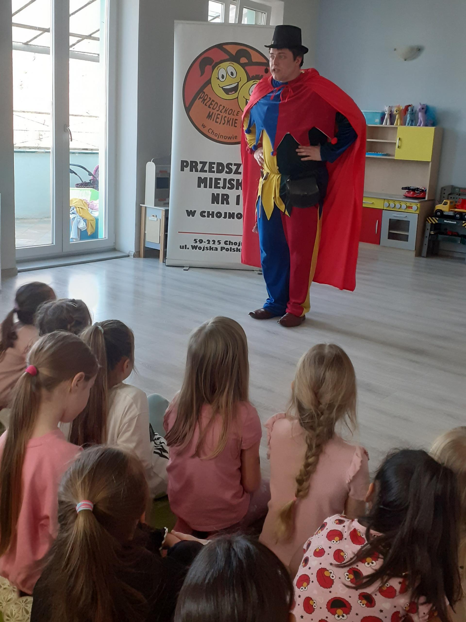 26 lutego nasze przedszkole odwiedził niezwykły gość – Błazen Pieron, który zaprosił wszystkie dzieci do wspólnej podróży po krainie iluzji i humoru. Nie był to jednak zwyczajny pokaz. Program „Magiczny Świat Błazna Pierona” okazał się widowiskiem, w którym przedszkolaki stały się głównymi pomocnikami magika. Dzieci z zapartym tchem podziwiały niesamowite sztuczki, a dzięki aktywnemu udziałowi w zabawach każda chwila była przepełniona śmiechem i radosnymi niespodziankami. Spotkanie udowodniło nam, że dziecięca wyobraźnia naprawdę nie zna granic. Dziękujemy za ten niezapomniany dzień pełen wrażeń!