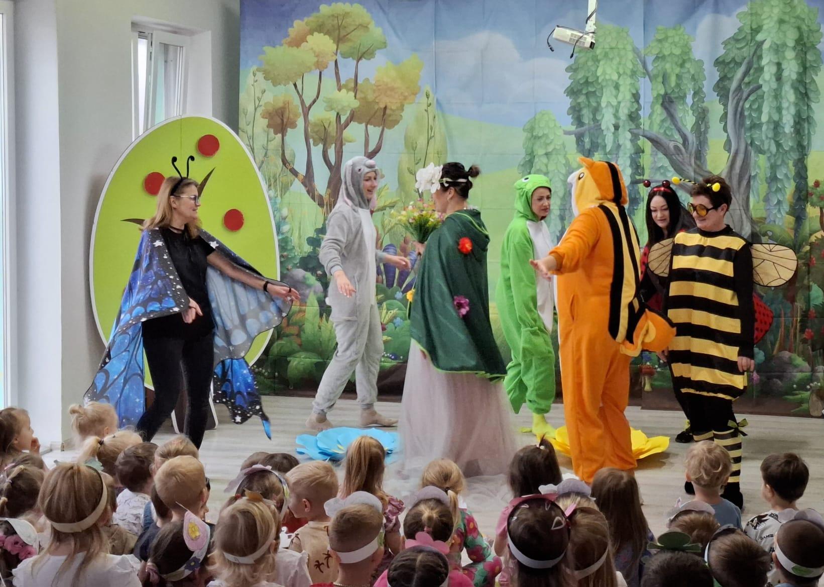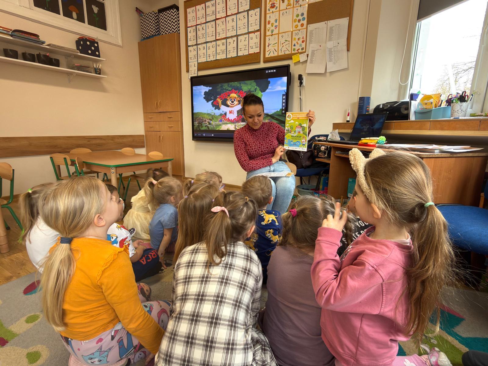 Dzieci poznały tę historię w przystępny i radosny sposób – poprzez barwną opowieść i krótką rymowankę. Nie zabrakło również ruchu i zabawy – przedszkolaki chętnie pokazywały gestami treść piosenki, angażując się całym ciałem i wyobraźnią.