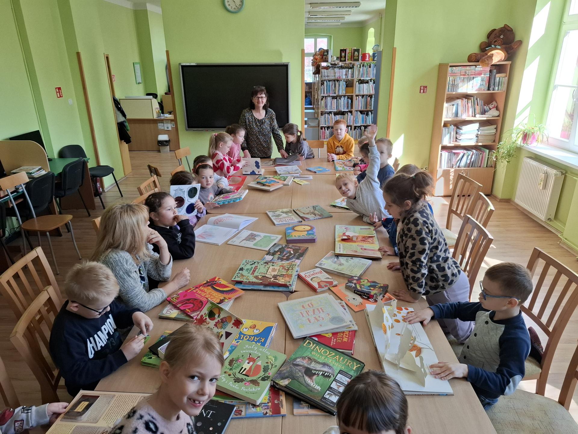 We wtorek, dwie grupy starszaków ,, Słoneczka " i ,, Krasnale" spotkały się na kolejnej lekcji bibliotecznej.Dzieci chętnie i z wielką ciekawością wysłuchały bajki pt,, Gdzie jest moja czapeczka ",do której mogły samodzielnie tworzyć zakończenie.Pani bibliotekarka omówiła z dziećmi wiadomości na temat nazw pomieszczeń oraz zasad panujących w bibliotece.Dzieci chętnie wypowiadały się na temat prawidłowego obchodzenia się z książkami aby służyły nam na długie lata. Jak zawsze najwięcej emocji i zaciekawienia wzbudziło samodzielne przeglądanie książek.Każdy znalazł coś interesującego dla siebie. Dziękujemy Paniom z biblioteki za wspólnie spędzony czas.