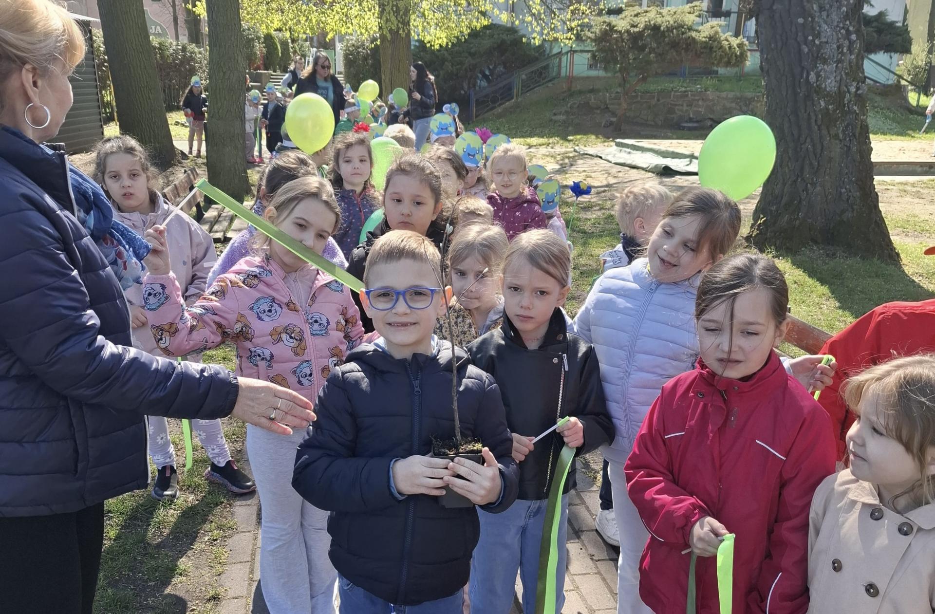 Dzisiejszy dzień w naszym przedszkolu upłynął pod znakiem troski o środowisko. W ramach Dnia Ziemi, nasze przedszkolaki, przemaszerowały kolorowym korodowem niosąc ważne przesłanie. Podczas spaceru dzieci głośno i z dumą wykrzykiwały hasła zachęcające do dbania o naszą planetę - przypominały o konieczności ochrony przyrody, segregowania odpadów oraz szacunku dla otaczającego nas świata. Kulminacyjnym punktem dnia było wspólne sadzenie drzewek. Każda grupa zasadziła swoje własne drzewko jarzębiny, które od dziś będzie symbolem ich zaangażowania w ochronę środowiska. Dzieci z wielkim entuzjazmem uczestniczyły w tym zadaniu, ucząc się jednocześnie, jak ważna jest troska o naturę i jak wiele dobrego możemy zrobić wspólnie. To był dzień pełen uśmiechu, nauki i inspiracji!